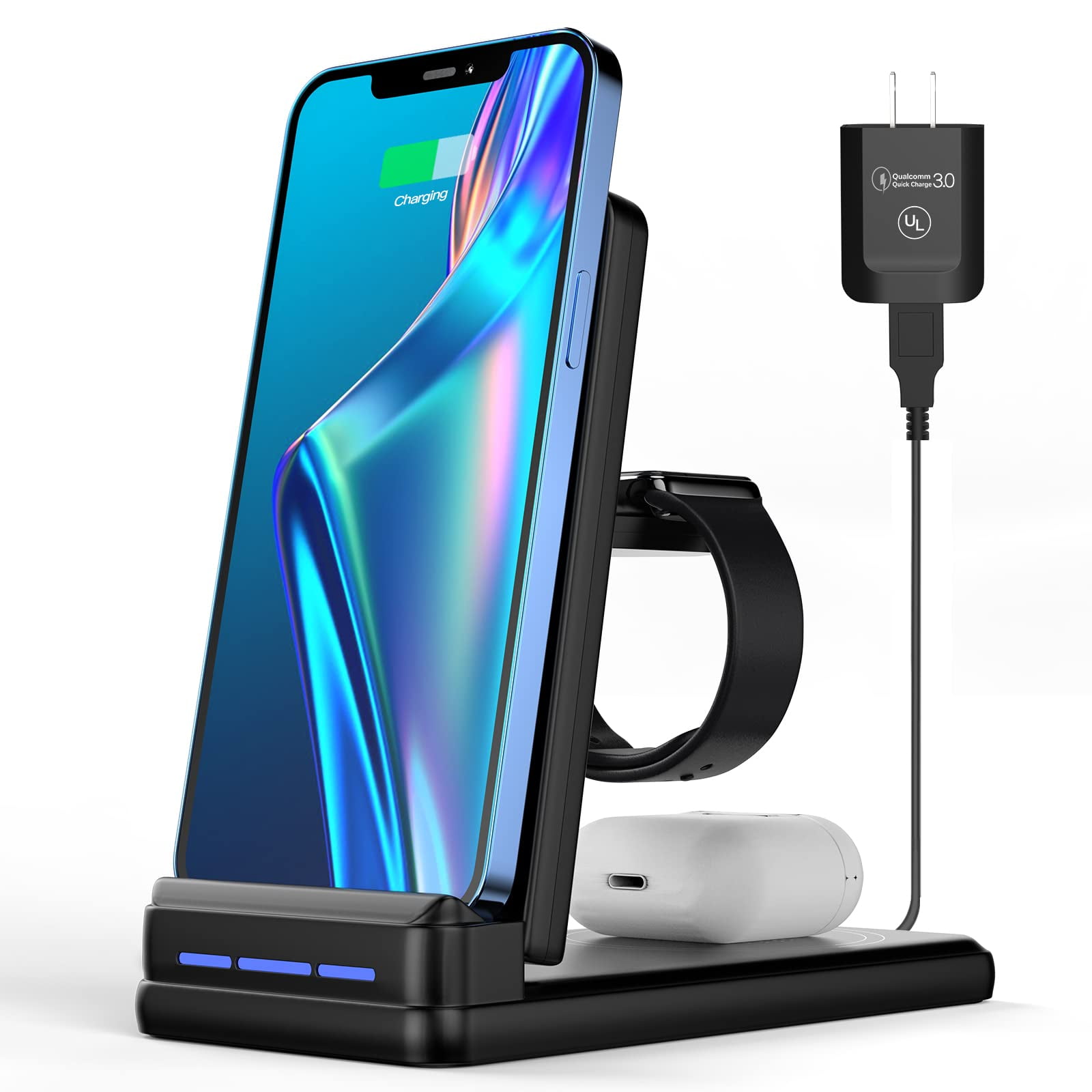 Charging Station For Multiple Devices Apple Foldable 3 In 1 Wireless Charger For Iphone 14 13 12 Pro Plus 11 Xs Xr X 8 Charger Stand Compatible With Apple Watch S2 S7 Se And Airpods Black Walmart Com
